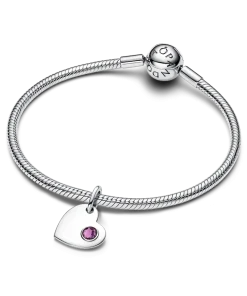 February babies, wear your birthstone color close to your heart. This sterling silver set includes a necklace and a dangle heart charm set with a sparkling purple man-made crystal.