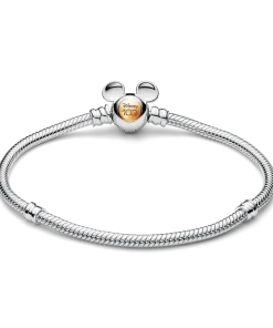 Make precious memories last forever with our Disney 100th Anniversary Moments Snake Chain Bracelet. Hand-finished in sterling silver, this limited edition collector’s piece features a Mickey Mouse-shaped clasp with a 14k gold circle engraved with “Disney 100”. Style it with your favourite Disney x Pandora charms to celebrate 100 years of wonder.