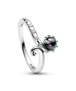 Channel the deepest corners of the ocean with our Disney The Little Mermaid Ursula Ring. Inspired by the mysterious power of Ursula, this ring captivates with a luminous purple lacquered artificial pearl set between two sterling silver tentacles. Sparkling stones and microbeads along one side of the ring band catch the light like the sun reflecting off the waves.