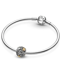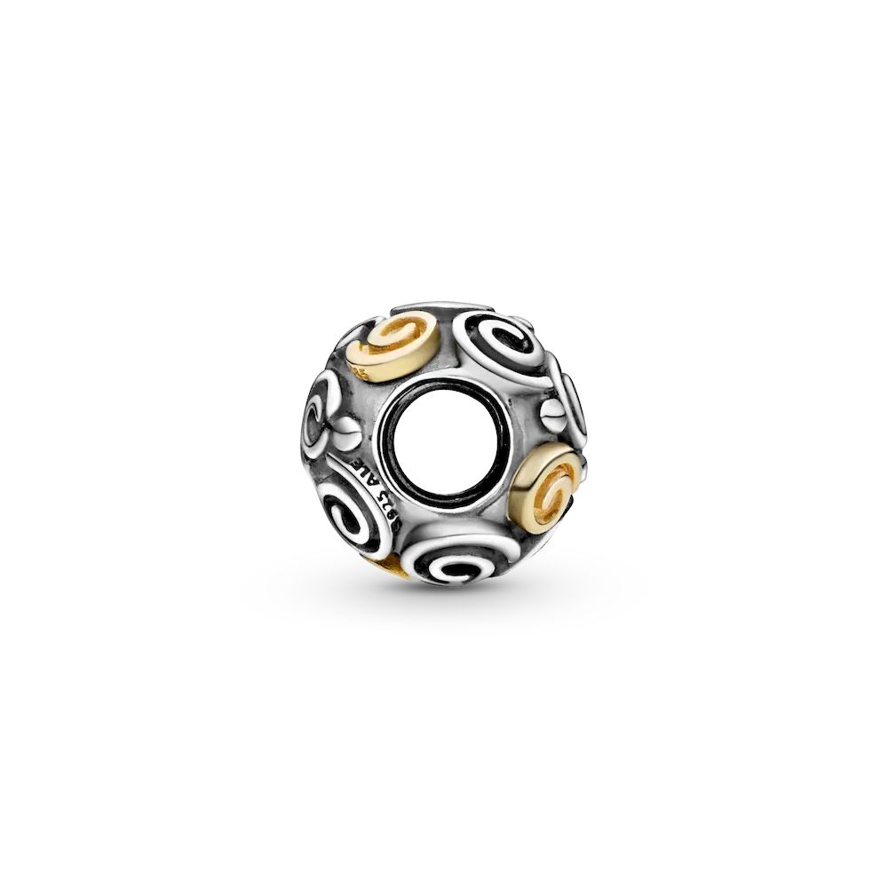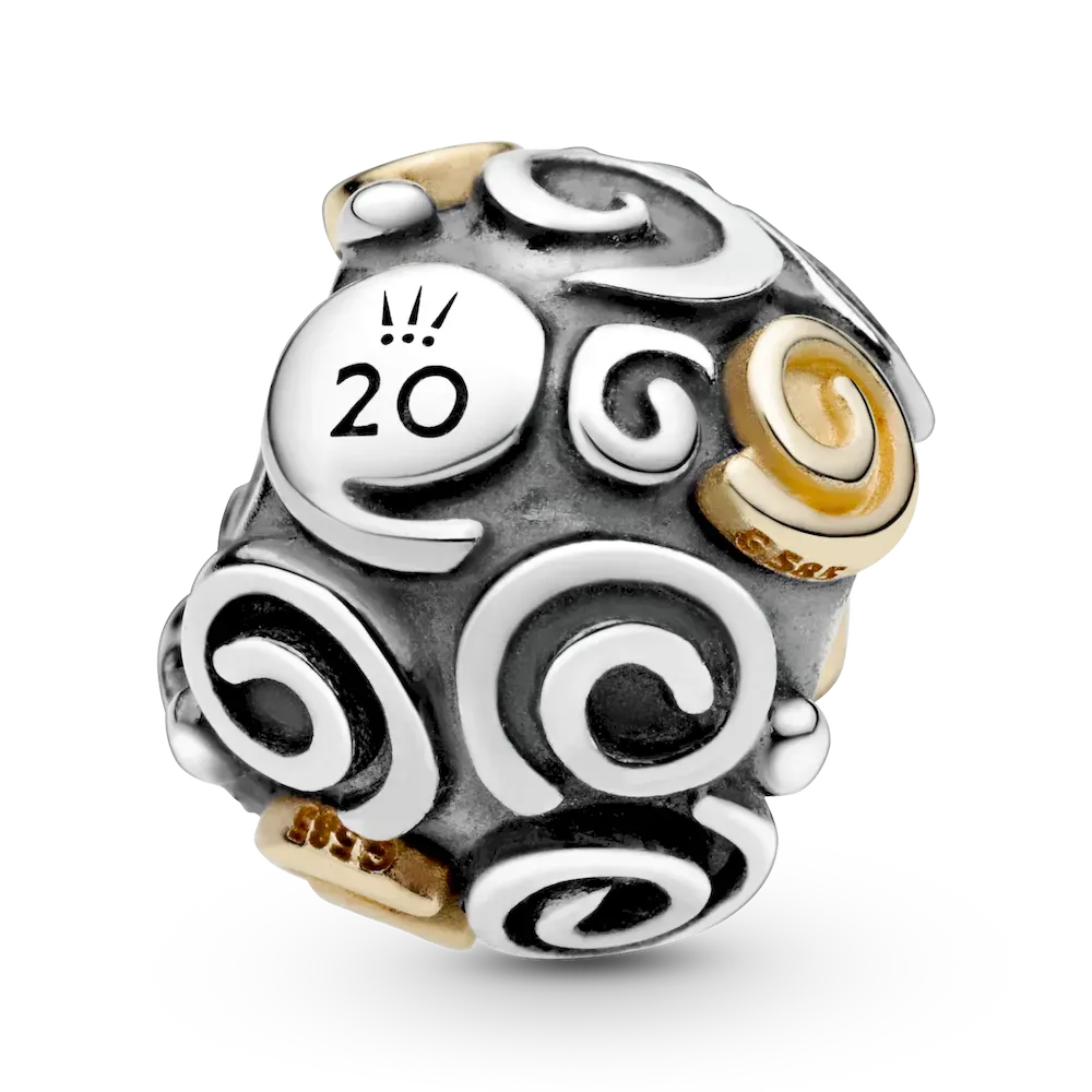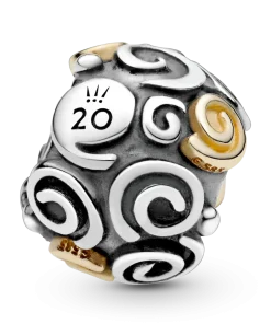 Mark 20 years of collecting Pandora Moments charms with the Pandora 2020 Limited Edition Swirl Charm. Hand-finished in sterling silver and 14k gold, this design is a reinterpretation of a piece from our archives. A few of the charm’s raised swirls feature solid 14k gold and are set amongst sterling silver swirls for an eye-catching two-tone finish. Including a special 20th anniversary logo engraving, express your passion for collecting with this symbolic swirl charm. Style with sterling silver charms on your bracelet to let this piece stand out.