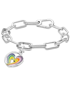 The freedom to be ME, Pandora ME Rainbow Heart of Freedom Medallion Charm carries a symbol of love and inclusion with you wherever you go. This asymmetrical heart charm features rainbow-colored enamel and a row of purple man-made crystals, inspired by the rainbow as a symbol of hope and freedom. This heart medallion charm has a closed bail and is made to style on Pandora ME Openable Links across your link chain bracelets, necklaces, rings and hoops, as a celebration of your authentic self.
