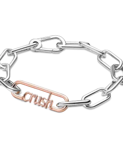 Wear your secret crush everywhere you go with this Pandora ME Styling Crush Word Link. Hand-finished, this 14k rose gold-plated link is emblazoned with the word “crush” in a handwritten font and can be worn between openable links. Style yours to represent your secret crush, your best friend crush, or even your love for yourself. Add significance to your looks by attaching this meaningful link into your link chain bracelets, necklaces or hoops, you can even make it more personal with a medallion charm. Styling tip: one styling word link measures the same length as a double link or four small links, allowing for endless combinations.