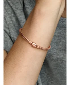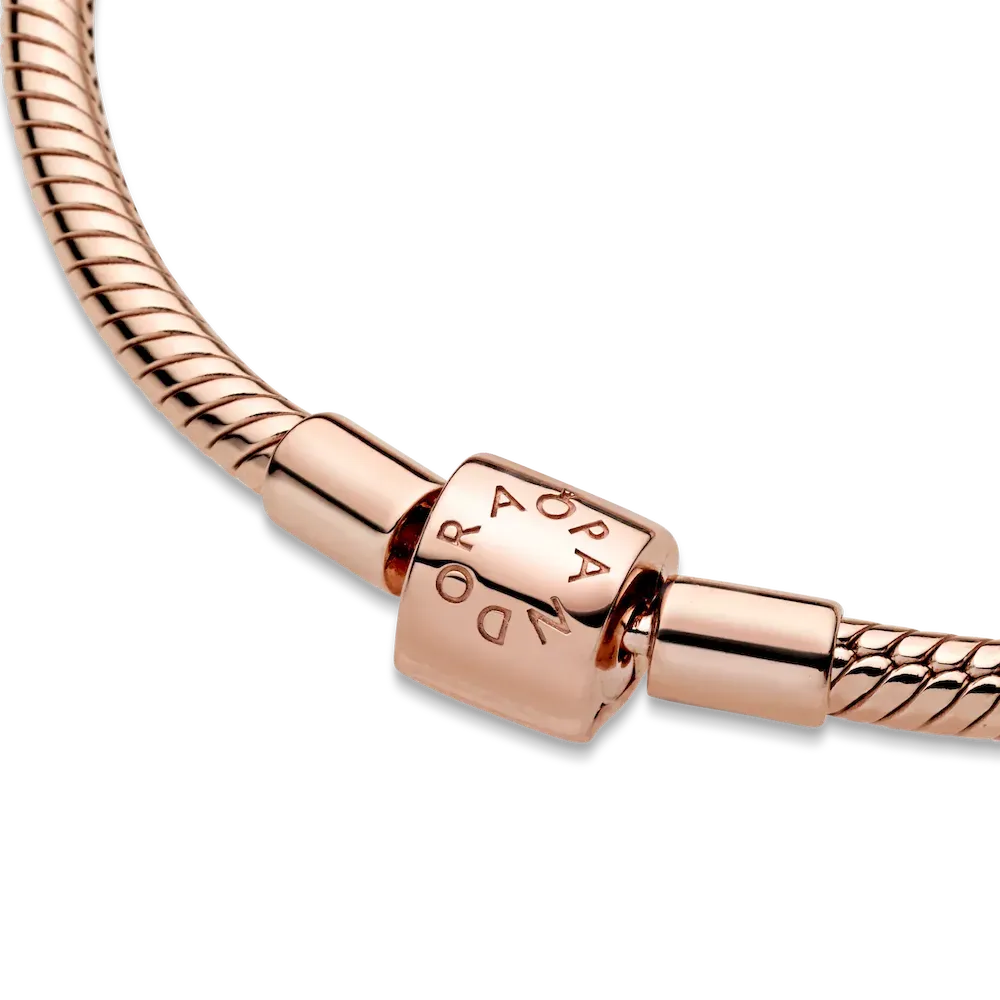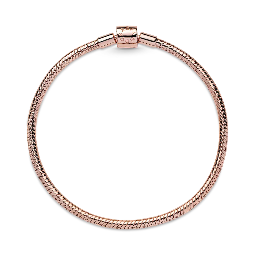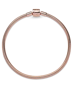 Never forget who you are and where you came from with this snake chain bracelet. The Pandora Moments Barrel Clasp Snake Chain Bracelet is hand-finished in 14k rose gold plating and represents a classic piece of Pandora’s heritage. The barrel clasp was a part of our first ever snake chain bracelet designs, which we’ve now updated with sleeker details. Celebrate Pandora’s history with this iconic piece and let it live on as a part of your collection.