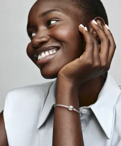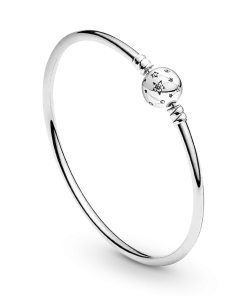 Inspired by the starry night sky, the Pandora Moments Stars & Galaxy Bangle will bring celestial sparkle to your look. Hand-finished in sterling silver, the bangle’s ball-shaped clasp features engraved stars and clear cubic zirconia stones, while the back side of the shank features engraved stars. This piece can be combined with up to 16-18 Pandora Moments charms and dangles. Wear this bangle with other celestial-inspired designs for a look that’s out of this world.