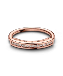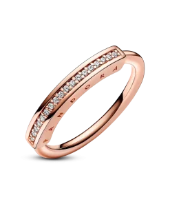 Add a touch of sparkling sophistication to your look with the Pandora Signature I-D Pavé Ring. Hand-finished with 14k rose gold plating, this architectural piece features an iconic round-and-square profile, complemented by a row of pavé. Wear it as an elegant statement piece or pair with the sterling silver version for an elevated stack.