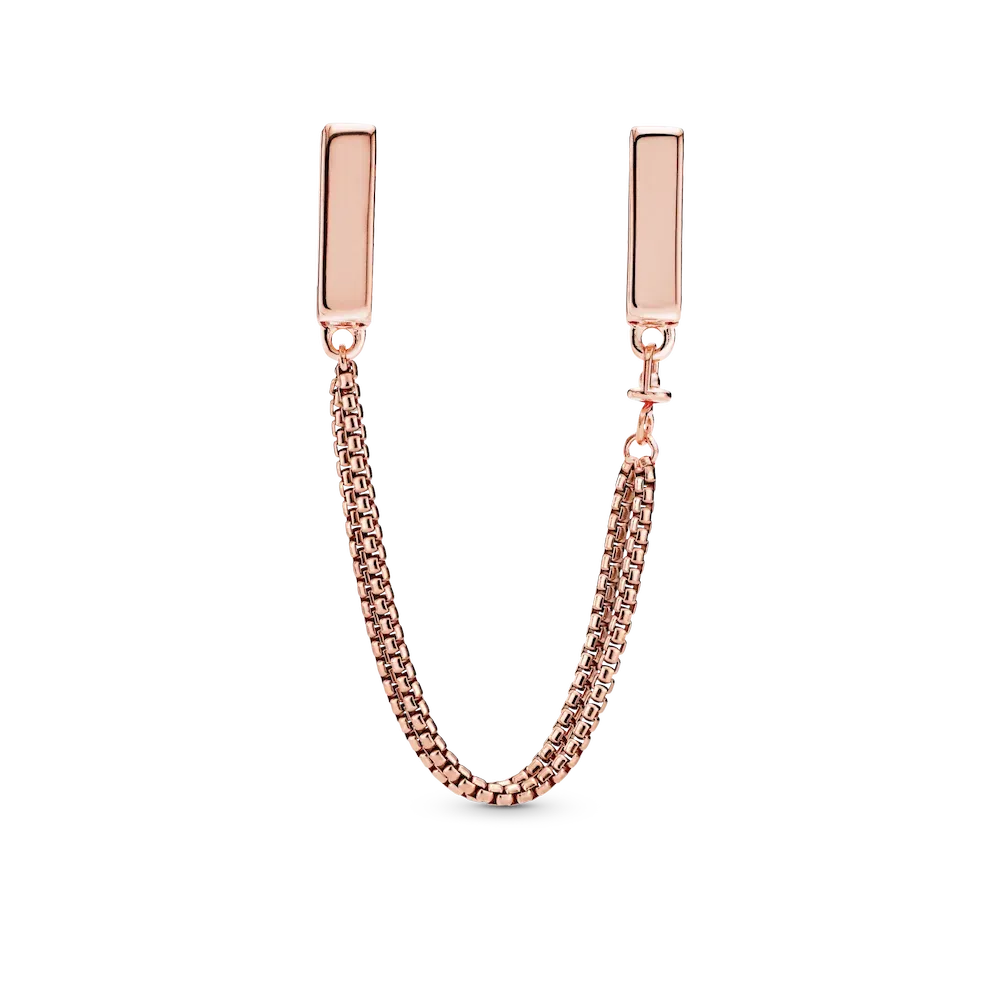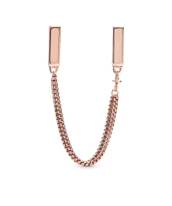 Add the finishing touches to your styling with this Safety Chain Clip Charm for Pandora Reflexions bracelets. Minimally detailed with two chains in varying lengths that create an elegant draped effect, the 14k rose gold plated charm adds streamlined style to any look. The bar charms feature swivel ends to prevent the chain from tangling as well as silicone grips that keep it in place. After you’ve added your favourite charms, clip it on your bracelet before closing it to mirror your personal style.