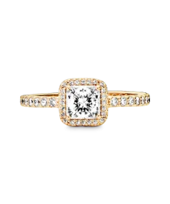 A piece to stand the test of time, this glamorous halo ring is centered with a striking cubic zirconia that’s been faceted to reflect the light. Cast from Pandora Shine™ (14k gold-plated unique metal blend) it’s decorated with scores of cubic zirconia in a nod to traditional styles. Make it yours and style as part of a personal ring stack – or go solo, wearing it traditionally on a ring finger.