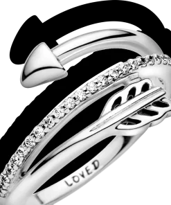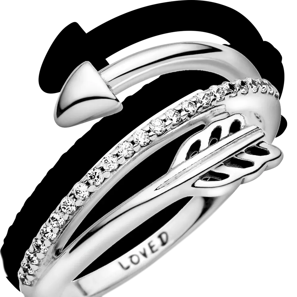 Our sterling silver arrow ring is a sleek way to add a symbol of love to your look. The hand-finished ring wraps around your finger to create a stacked effect and is engraved on the inside with the message