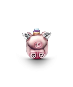 Defy the odds with our Flying Unicorn Pig Charm. Hand-finished in sterling silver coated with transparent pink enamel, this charm features a pig poised to take flight. It is detailed with a spiralling rainbow enamel horn, grooved wings, raised hearts on all four feet and a curly tail. Engraved with