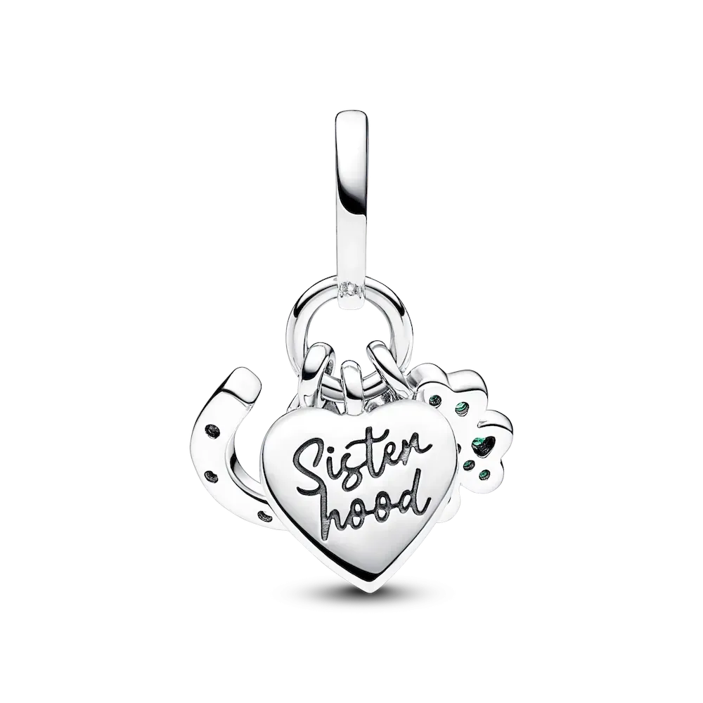Four Leaf Clover, Heart and Horseshoe Triple Dangle Charm