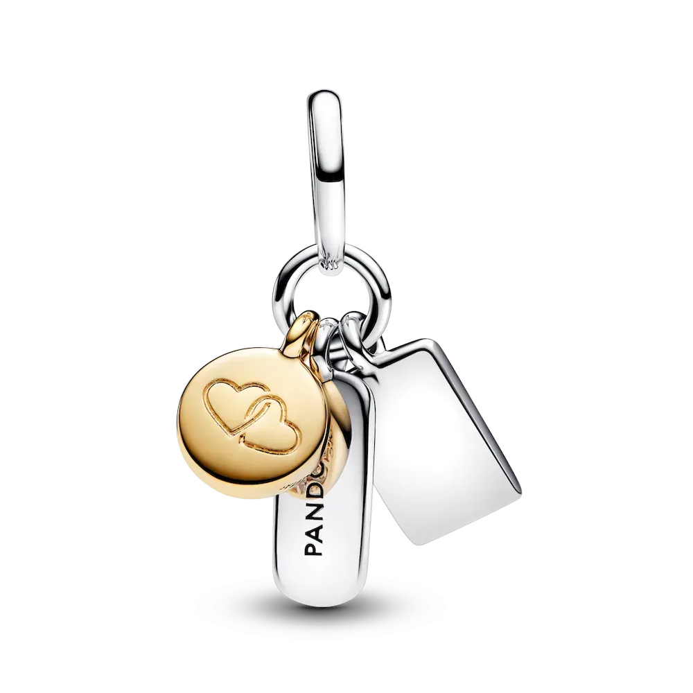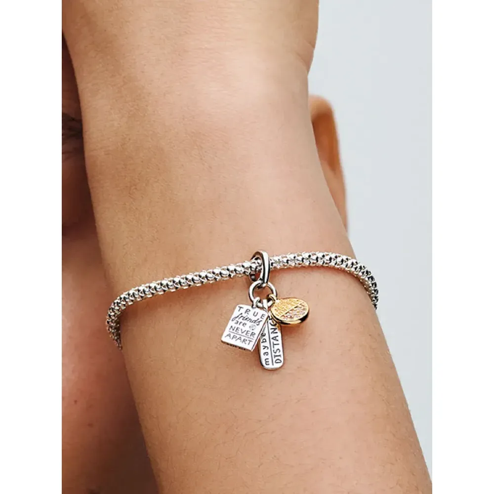A tribute to your forever friends. This two-tone friends charm has three dangles, with engravings that read