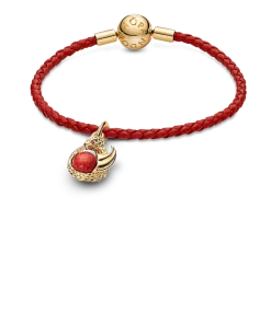Game of Thrones dragon in 14k gold-plated metal featured on the Pandora Moments Red Woven Leather Bracelet. Collect your way through Westeros with this perfect bracelet set.