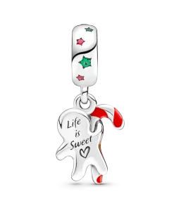 This mischievous Gingerbread Man Dangle Charm will steal your heart. Hand-finished in sterling silver and decorated with colorful red, pink and green enamel, this dangle charm features a gingerbread man holding a red and white striped candy cane. Bow and button details, as well as silver icing on his wrists, legs and head, bring the gingerbread man to life. This adorable dangle charm also features the lovely engraving