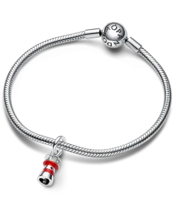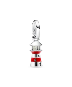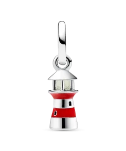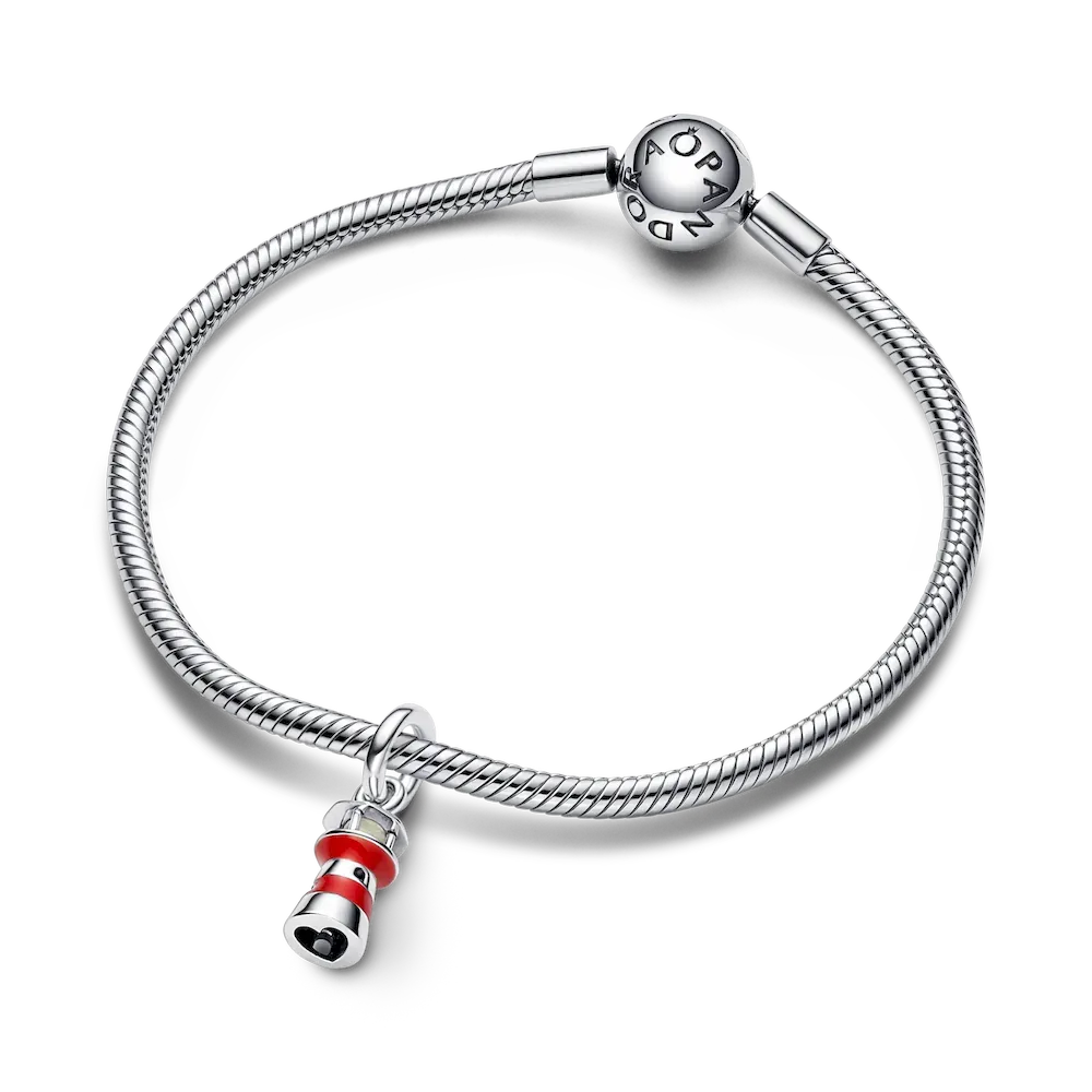 Shine bright wherever you are with the Glow-in-the-dark Lighthouse Dangle charm. Featuring hand-applied red enamel stripes and life-like lighthouse details including cut-out windows, a look-out spot as well as glow-in-the-dark glass in the windows and a cut-out heart at the bottom. Traditionally used to guide ships safely home in the night, the lighthouse is a reminder to stand firm and always be there for those in need. Style it together with your favorite Pandora charms for everyday guidance or gift it to someone that represents hope and safety in your life.