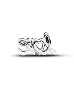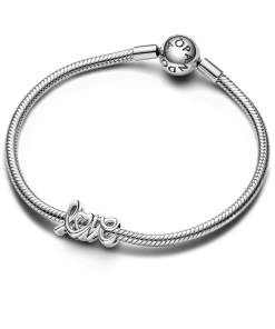 Spell out what’s in your heart with the Handwritten Love Charm. This openwork sterling silver charm is shaped like the word “love” in a handwritten style, designed to follow the line of your bracelet or charm holder. The word is mirrored on the other side of the charm, and the letter