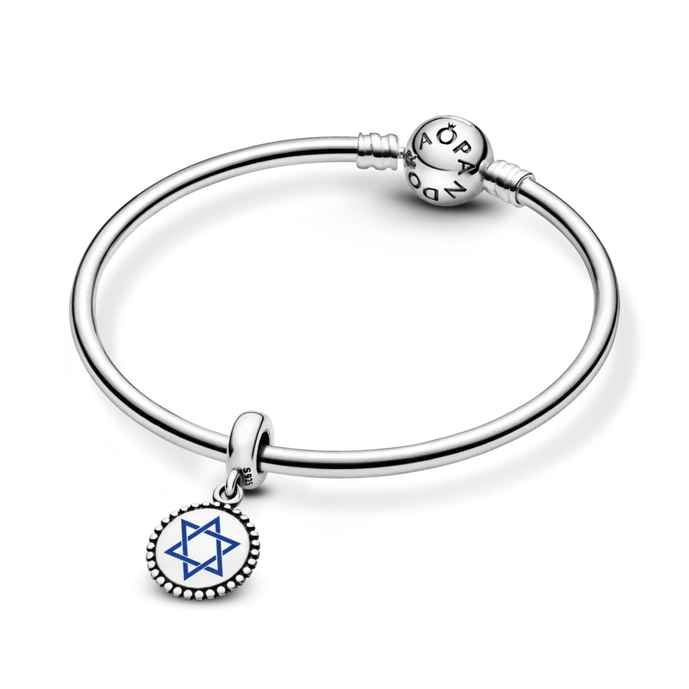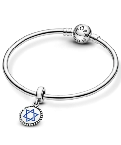 Share the warmth and wonder of Hanukkah celebrations with this symbolic charm trio. Crafted in sterling silver and adorned with glittering pavé, the sparkling button charm features a golden menorah set against a rich blue enamel. Shining bright at the center of a sterling silver dangle charm, the Star of David shimmers in an enamel of metallic blue. Love ties this set together with a 14k gold-plated heart charm, featuring a beautiful blue Hanukkah gift box. Hand-finished to shine always and forever, these pieces are perfect for adding a touch of hope and happiness to your holiday ensemble. Find your light. Wear your joy. Be love.