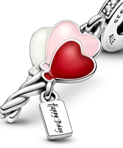Wish someone special a happy birthday with our celebratory heart dangle charm hand-finished in sterling silver. It’s been carefully shaped into balloons, decorated with hand-applied enamel and trimmed with an engraved