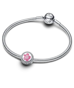 Bring a touch of tropical charm to your collection with this vibrant hibiscus flower charm. Crafted from sterling silver, it features a bright pink enamelled hibiscus on one side and