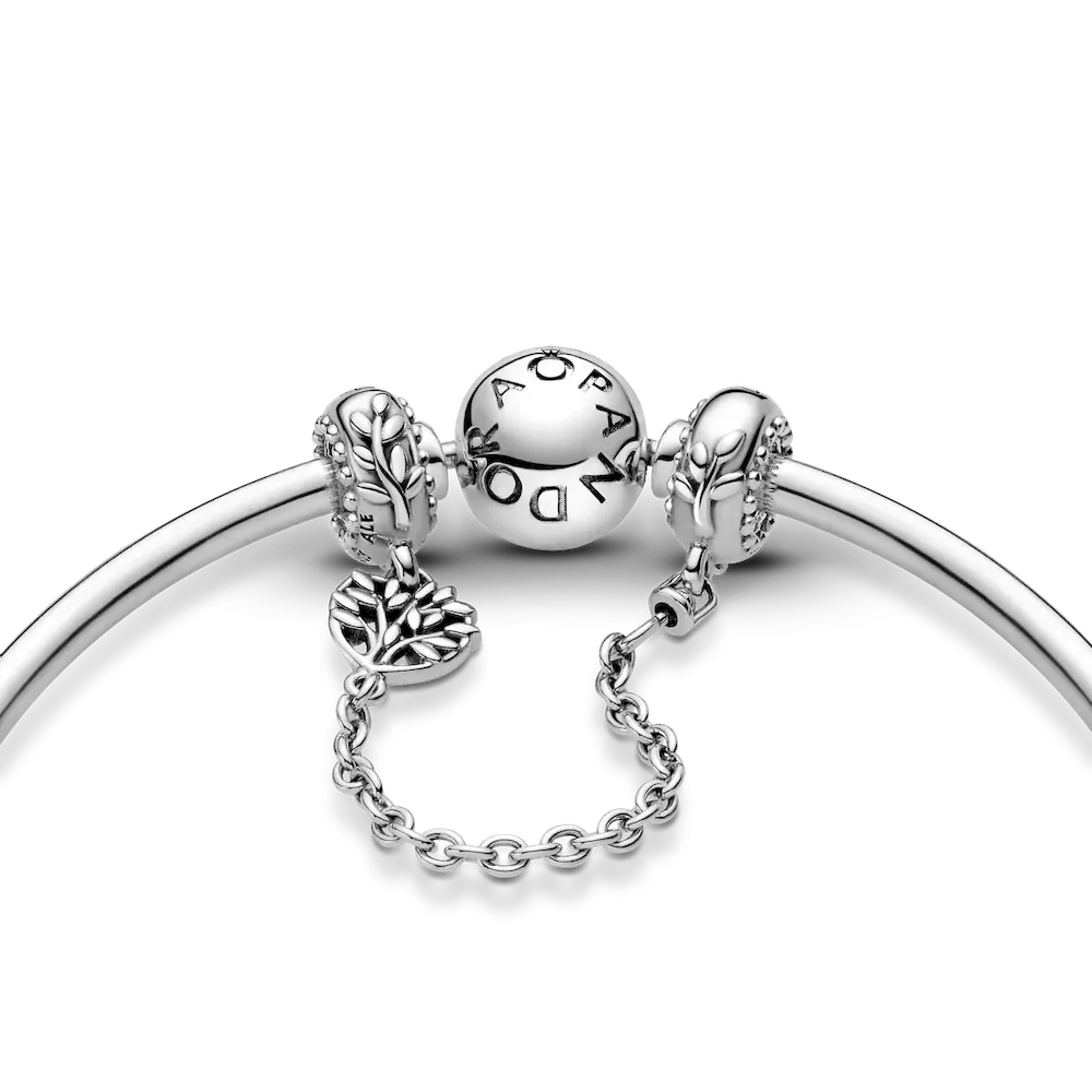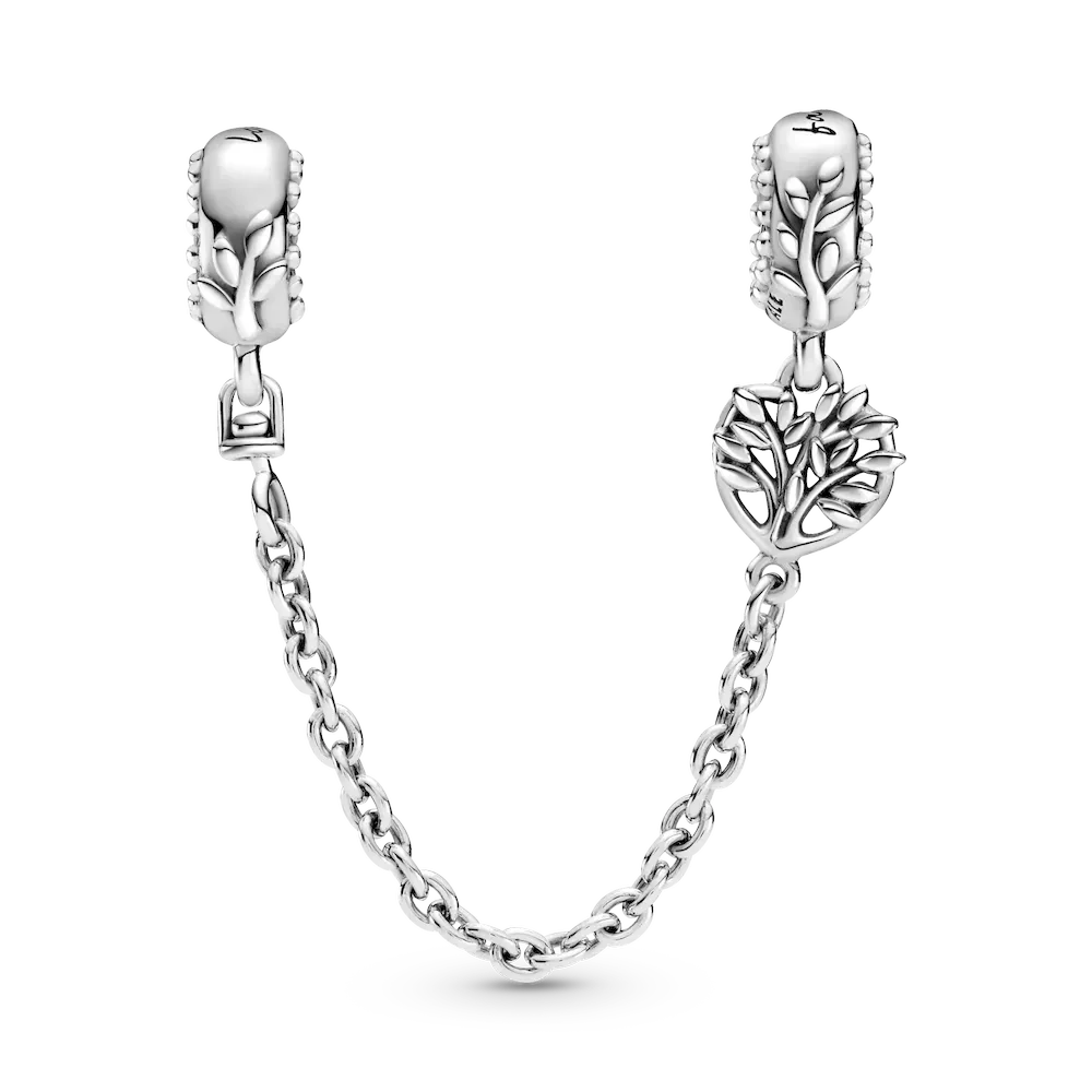 Inspire your loved one to keep their treasured styles safe with the Heart Family Tree Safety Chain Charm. Hand-finished in sterling silver, this design is inspired by our iconic family tree motif. A heart-shaped openwork disc with the family tree nestled inside is attached to the chain. The top parts include embellished leaf details and small beading, with the engraving “Family” on one part and “Love” on the other. Gift this special piece to someone you hold dear.