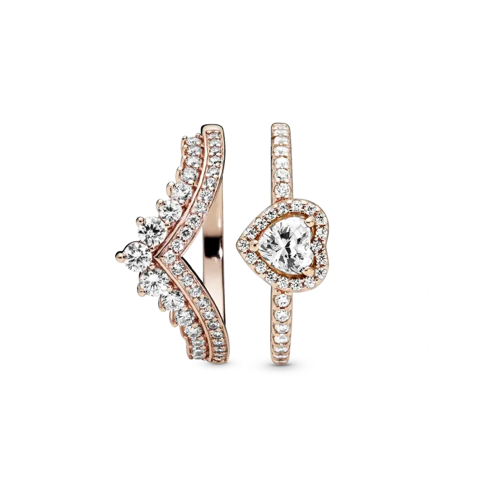 Heart of Rose Princess Wishbone Stacking Ring Set
