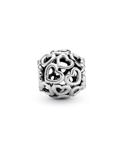 Hearts are an enduring symbol of love. Expertly hand-finished, this expressive sterling silver charm is shaped with openwork hearts that provide a glimpse of the carrier its worn on. Thread it on a favorite Pandora Moments bracelet or bangle together with other charms that tell your story. You can even wear it as a necklace pendant.