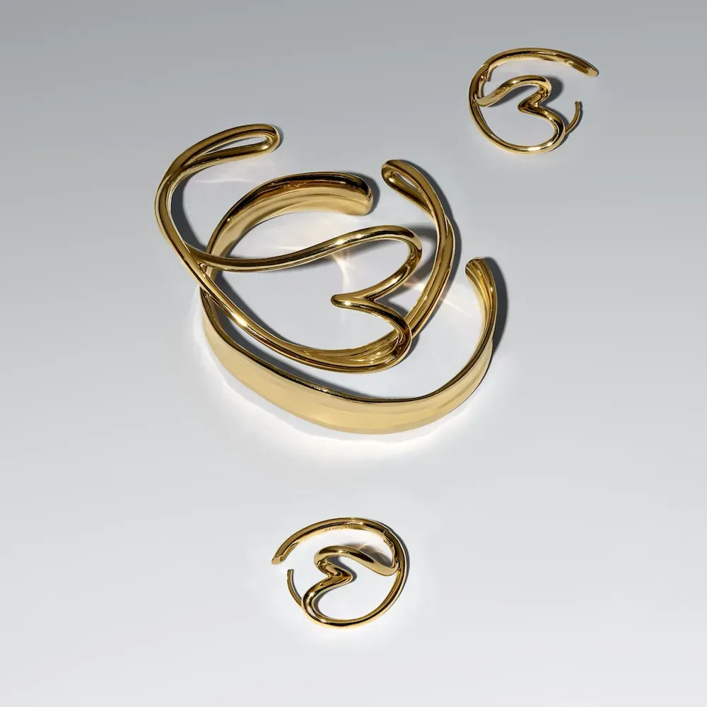 Celebrate love and nature with the Hearts Forever Jewelry Set. The Organically Shaped Heart Pendant Necklace features a twisted 14k gold-plated wire in varying thicknesses, creating a beautifully imperfect openwork heart. Adjustable for versatility, this necklace lets you choose how the pendant hangs—at an angle or straight. The matching Organically Shaped Hoop Earrings feature abstract openwork hearts, inspired by the natural world, and are finished in 14k gold plating. With their simple click closure and mirrored design, these earrings pair effortlessly with the necklace for a modern take on love and nature.