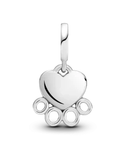 Wear a tribute to beloved pets with the Hearts & Paw Print Dangle Charm. Hand-finished in sterling silver, this paw print charm features a dangling open paw silhouette with a heart-shaped center and four toes, as well as a solid heart-shaped disc with a ‘Paw prints on my heart’ engraving. The bail on this pet charm features two paw stamps on each side for an extra dose of cuteness. Animal lovers, this charm will win your heart.