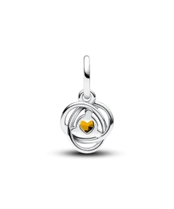 This intricate Honey Eternity Circle Dangle Charm is a must-have infinity charm for your Pandora Moments collection. Crafted in lustrous sterling silver, it features an openwork infinity braid decorated with a central honey-colored man-made crystal, elegantly surrounded by three clear cubic zirconia. The intricate design symbolizes eternity and adds an additional layer of meaning to the piece. Elevate your bracelet with this essential piece or gift it as a representation of an everlasting bond.