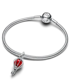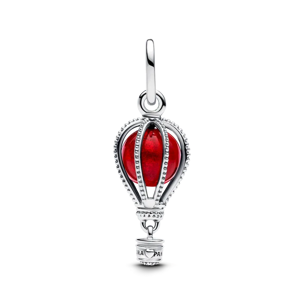 Reach new heights with the Hot Air Balloon Murano Glass Dangle Charm crafted in sterling silver. A red Murano glass balloon is encased in microbeaded panels, while below the balloon, a small gondola awaits to transport you to your destination. Wear it for daily inspiration or gift it to someone who is ready for their next adventure.