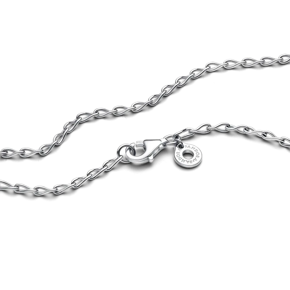 A necklace infused with subtle symbolism. Each link of this elegant sterling silver chain is shaped like an infinity loop, and the subtle twisted design creates a playful sense of movement to symbolize a love that will last forever.