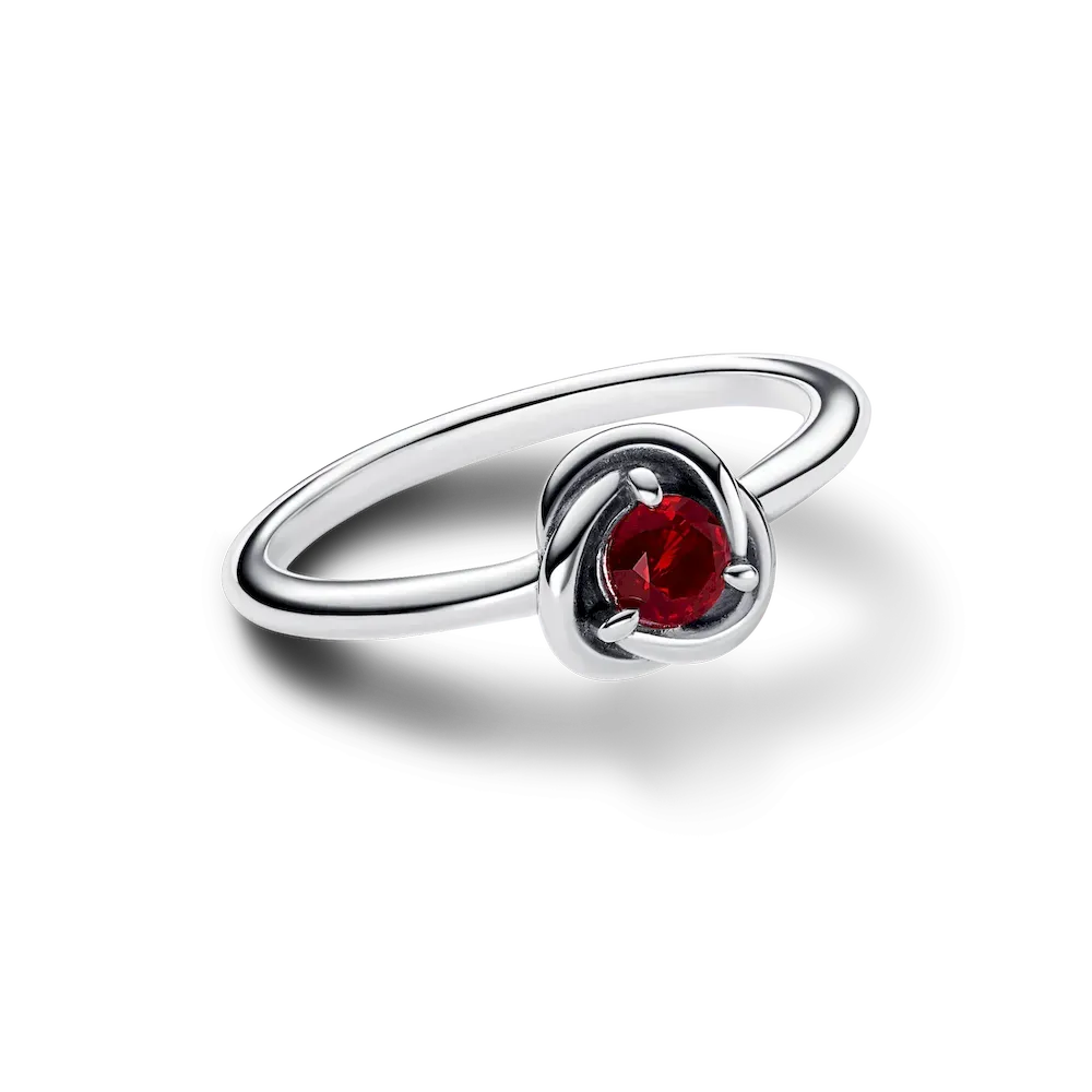 Wear a symbol of forever with the Red Eternity Circle Ring. This sterling silver ring features one claw-set sparkling red-hued man-made crystal. The polished band wraps around the center stone in an openwork braided infinity pattern. Whether you want to carry a reminder of eternal love or a symbol of the timeless joy that infuses each and every moment, this colorful eternity ring will bring sparkling meaning to your look.