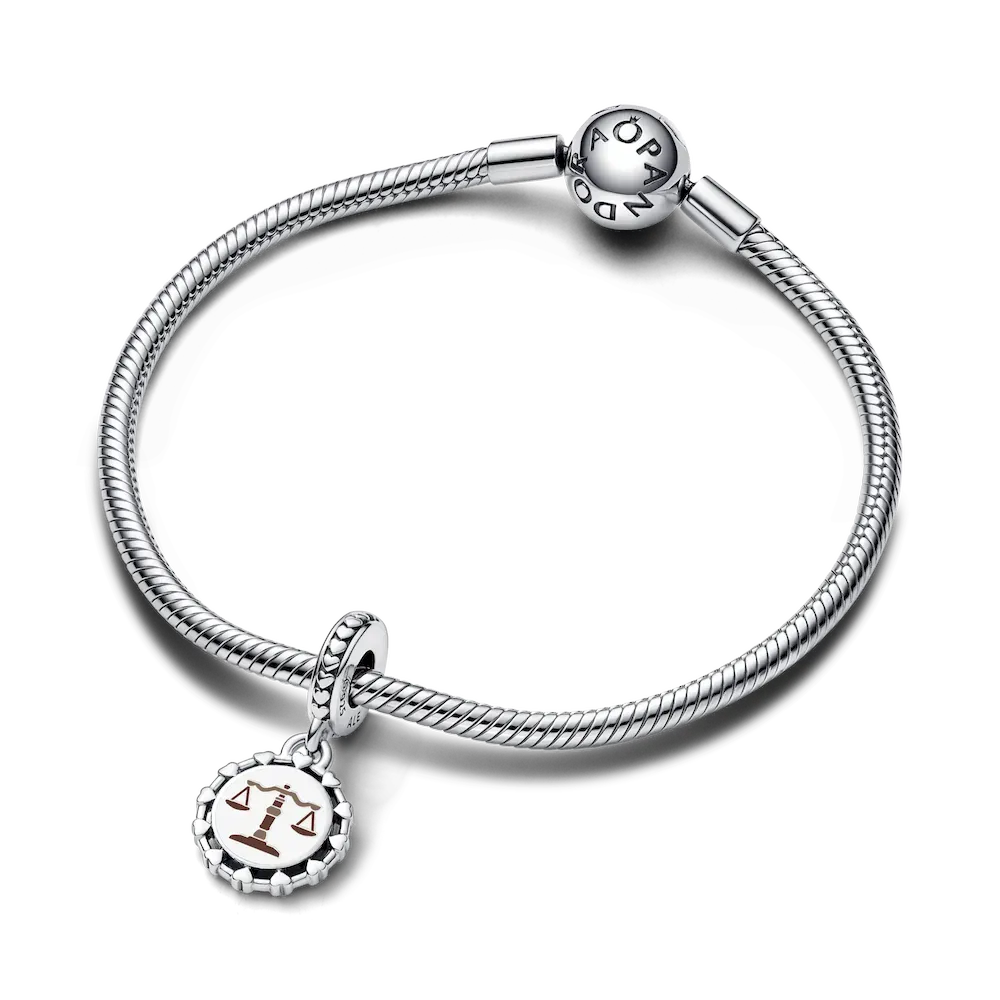 Honor the legal profession with this Engravable Lawyer Dangle Charm in sterling silver. Featuring a row of hearts around the bale and edges, the front showcases the iconic lawyer scales symbol, accented in gold and brown—symbolizing fairness and justice. Personalize the back with a custom engraving to create a meaningful tribute to those who uphold the law.