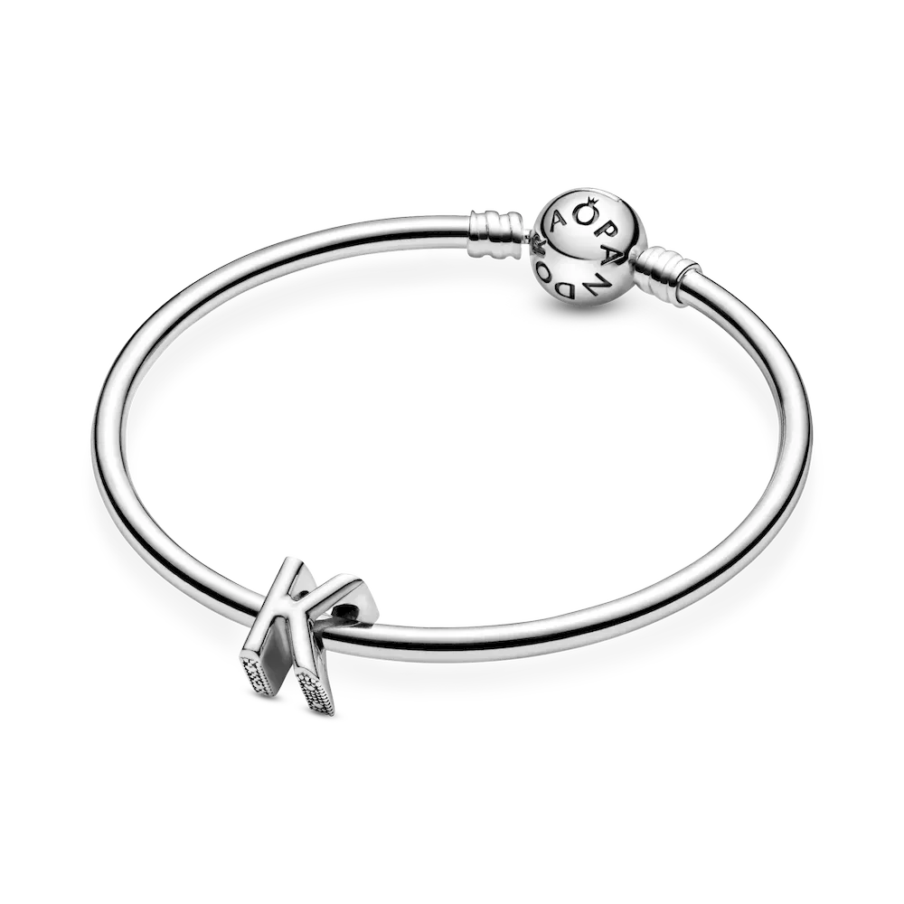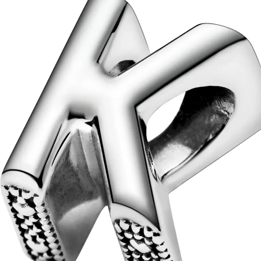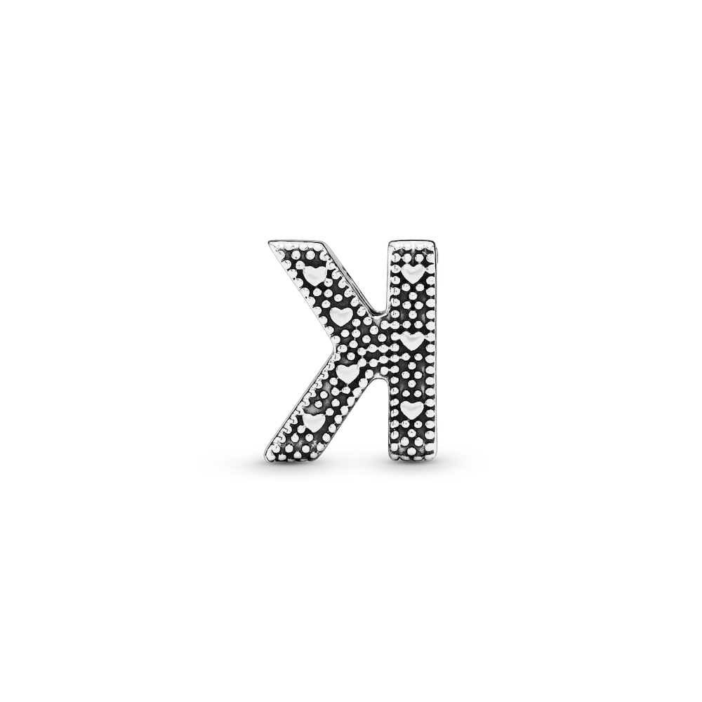 Tell your style story through our letter charms that let you spell out the words that mean the most to you. Monogram your Pandora Moments charm bracelet with important initials or create a personal message with the letter K. The reversible sterling silver charm is polished on the front and feature raised hearts and beads on the back. Add the letter K to your charm collection or gift it to someone that’s got a special connection to the letter.