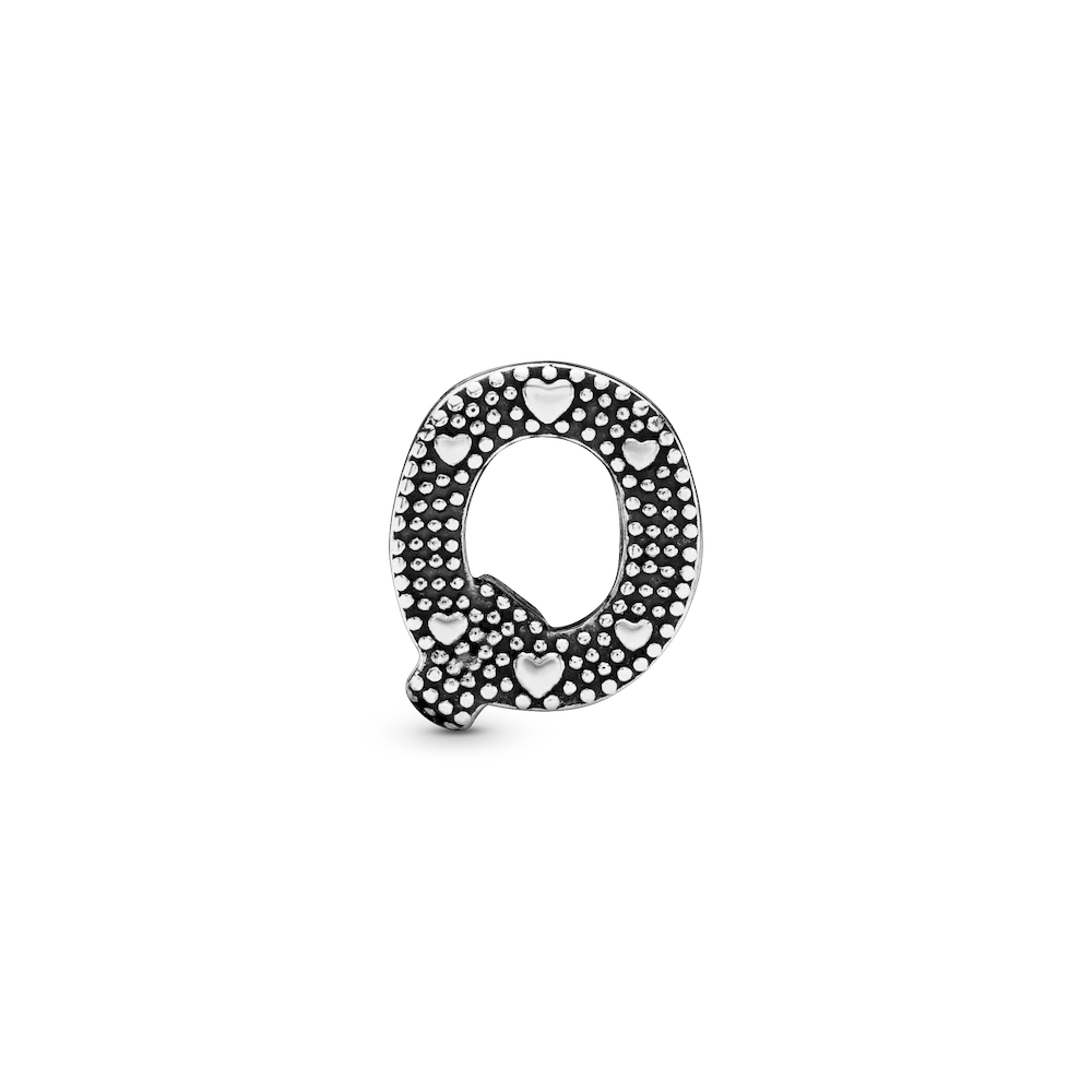 Tell your style story through our letter charms that let you spell out the words that mean the most to you. Monogram your Pandora Moments charm bracelet with important initials or create a personal message with the letter Q. The reversible sterling silver charm is polished on the front and feature raised hearts and beads on the back. Add the letter A to your charm collection or gift it to someone that’s got a special connection to the letter.