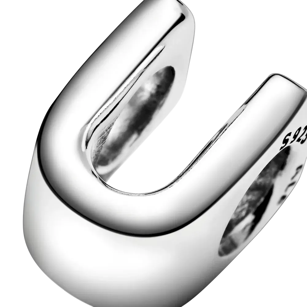Tell your style story through our letter charms that let you spell out the words that mean the most to you. Monogram your Pandora Moments charm bracelet with important initials or create a personal message with the letter U. The reversible sterling silver charm is polished on the front and feature raised hearts and beads on the back. Add the letter U to your charm collection or gift it to someone that’s got a special connection to the letter.