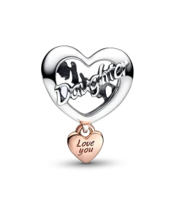 Show your appreciation for the dearest people in your life with the Love You Daughter Heart Charm. Crafted from sterling silver, this heart-shaped design features the word “Daughter” in openwork script on both sides. A small heart-shaped dangle in 14k rose gold plating adds a heartfelt touch, with the words “Love you” engraved on both sides. A meaningful gift for beloved daughter, to remind her of your love every time she wears her jewelry.