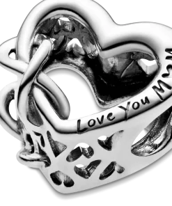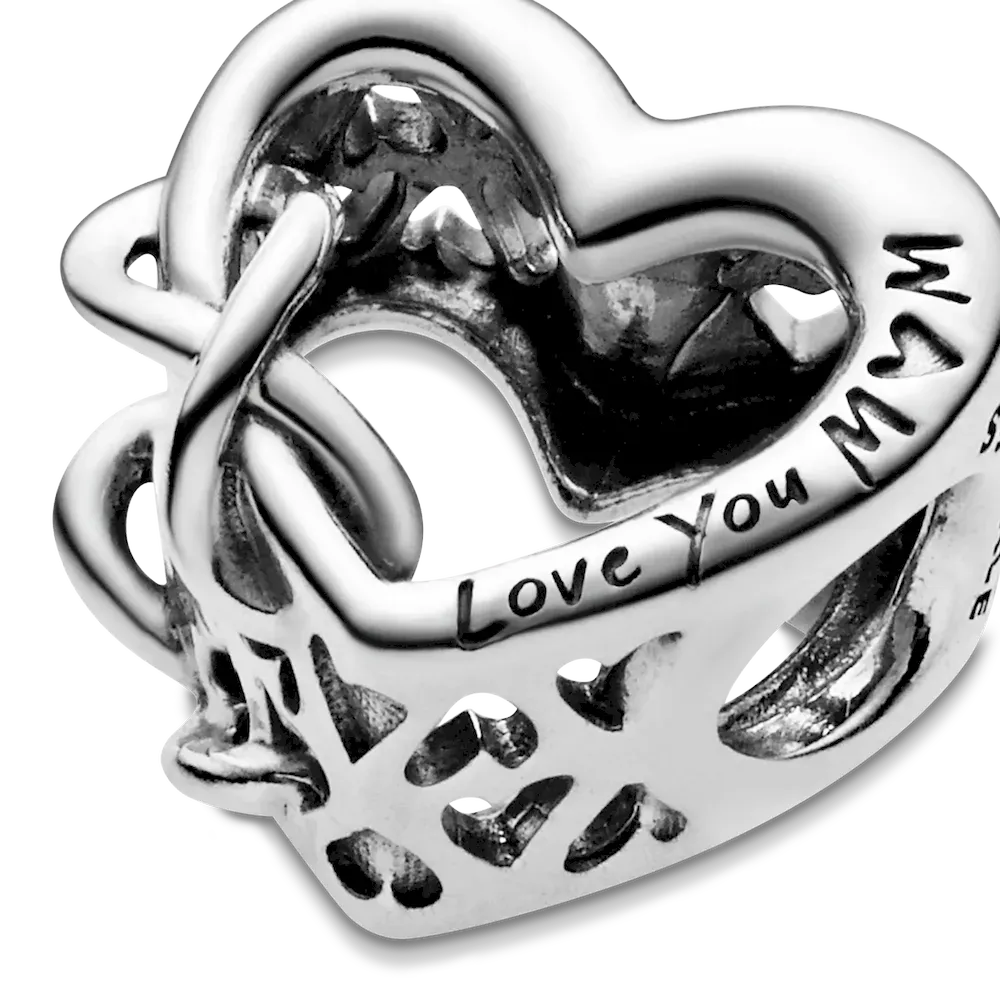 There’s nothing like the love between a parent and their child and this heart charm celebrates this bond. Made from polished sterling silver, this Love You Mom Infinity Heart Charm is composed of a heart shape with infinity wrapping with cut-out heart details. A small engraving on the side of the heart spells out the words