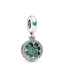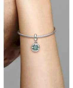 Feel lucky every day with this shimmering good luck charm. Set with clear cubic zirconia and green crystals, it brings meaning to your look and luck to your life. The sterling silver dangle charm is centered with a four-leaf clover. Wear it on your Pandora Moments bracelet as a symbol of your story or gift it to someone special as a lucky charm.