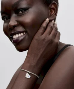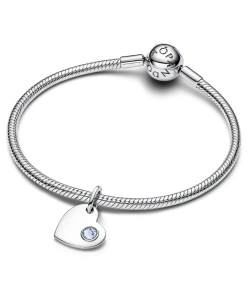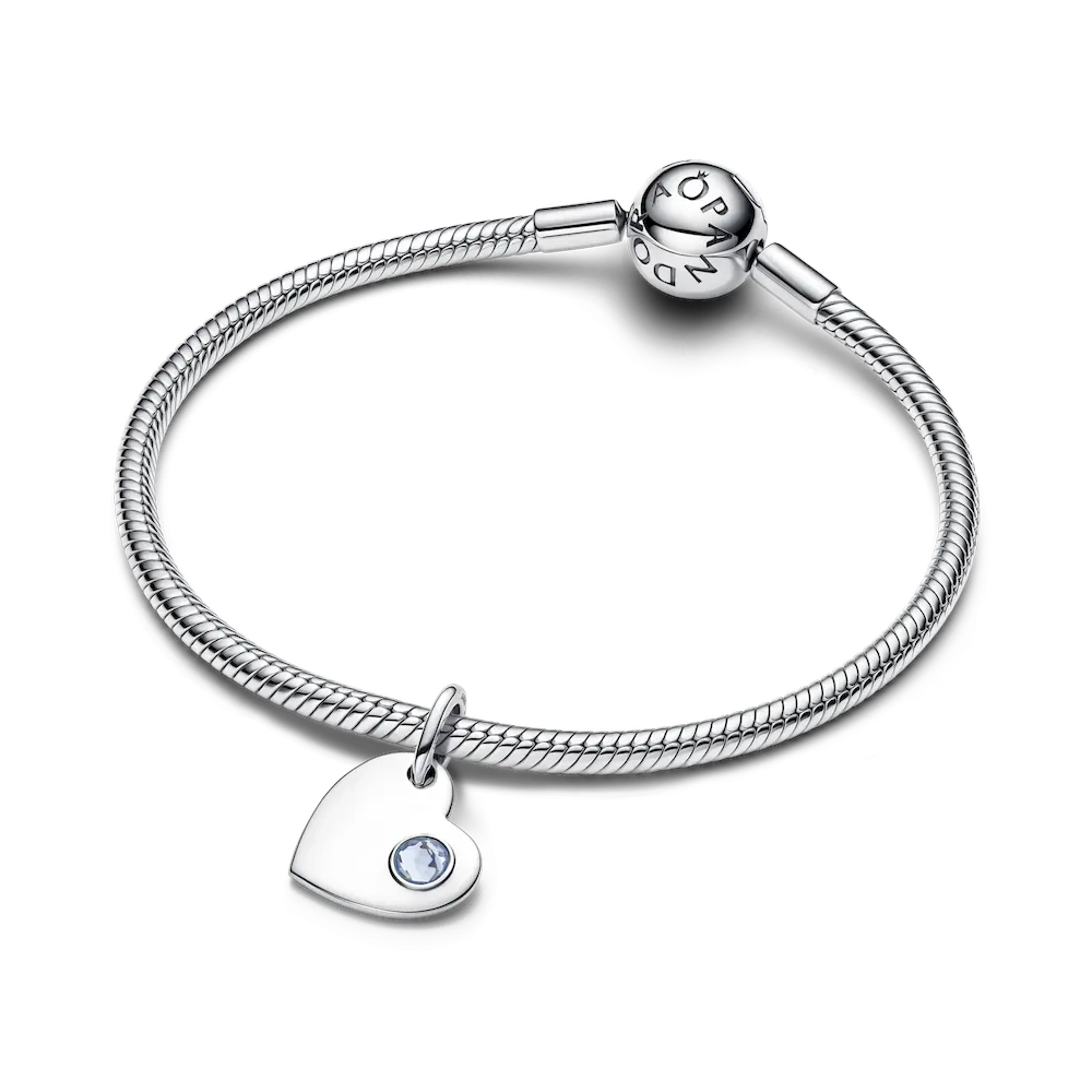 Wear your heart on your sleeve, literally. This sterling silver dangle charm pairs an aqua blue man-made crystal with a smooth back – a symbol of love and personal meaning.