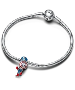 Hold on to your hero with the Marvel The Avengers Captain America Charm. Crafted in sterling silver, this charm depicts the iconic hero mid-action, as if he’s in the middle of an important mission. The figure is covered in hand-applied blue enamel and carries his trademark shield with a star symbol, representing his love for the United States. This unique Marvel x Pandora Avengers charm stands for hope and leadership, so wear it as a reminder of strength or gift it to the Marvel fan in your life.