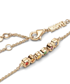 Wear your fandom in full color with the Marvel The Avengers Infinity Stones Chain Bracelet. This 14k gold-plated bracelet joins the Marvel x Pandora collection with man-made multicolored crystals and meaningful engravings. Symbolizing the six Infinity Stones from The Avengers, the crystals are bezel-set in different shapes, with each featuring a unique color and message: red (