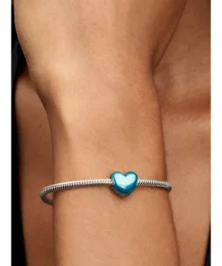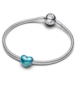 Add a dash of colour to your collection with our Metallic Sky Blue Heart. Coated in a transparent sky blue enamel which reveals the sterling silver beneath, creating a subtle metallic shine. Inspired by the power of colour, this heart-shaped charm is a luminous addition to any carrier, perfect for expressing calm and creativity.