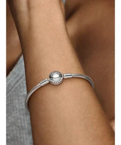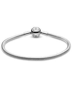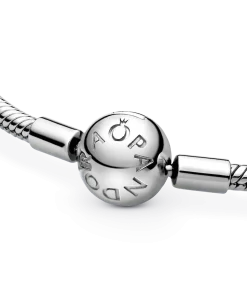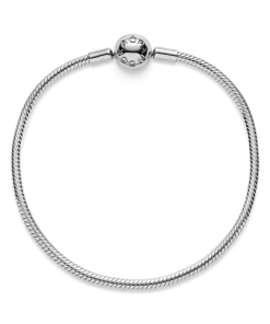 Start your very own Pandora story with this sleek snake chain bracelet in polished sterling silver. The perfect canvas for your creativity, this hand-finished bracelet can be styled in countless ways. Fill it with your desired charms and clips, wear it on its own for a simple, understated look, or stack it with contrasting bracelets for a fun play on textures. Only silicone-lined safety chain clips will fit this Moments bracelet.