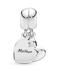 The bond between a mother and son is truly precious. Mark it with this meaningful split dangle charm, crafted in sterling silver and detailed with black enamel. The two-piece design is engraved on each heart with