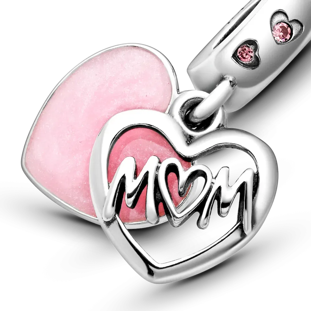 Nothing brings a mom more joy than the love of her children. That’s why this set of charms is the ultimate gift for the mother who would enjoy adding a little childhood charm to her Pandora bracelet, while always reminding her of the joys of motherhood. Included are two playful charms, one of a sweet little girl and the other of an adorable little boy, in sterling silver and pastel-colored enamel accents. And the third charm — the sterling silver Mom Script Heart Dangle Charm with pink enamel and pink cubic zirconia — contains the words every mom loves to hear, “I love you,” sweetly engraved on the back.