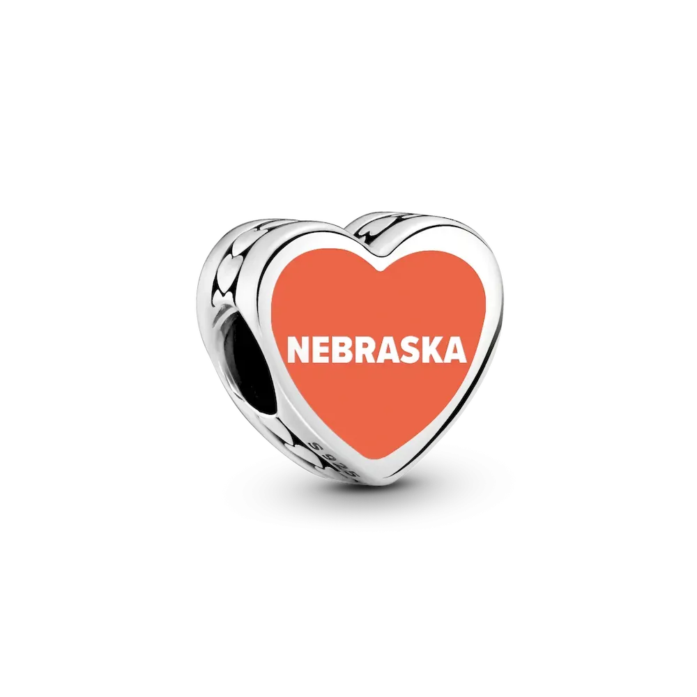 With a bold landscape of peaks, sunset skies, and prairie strength, this sterling silver heart charm reflects the rugged beauty of Nebraska.