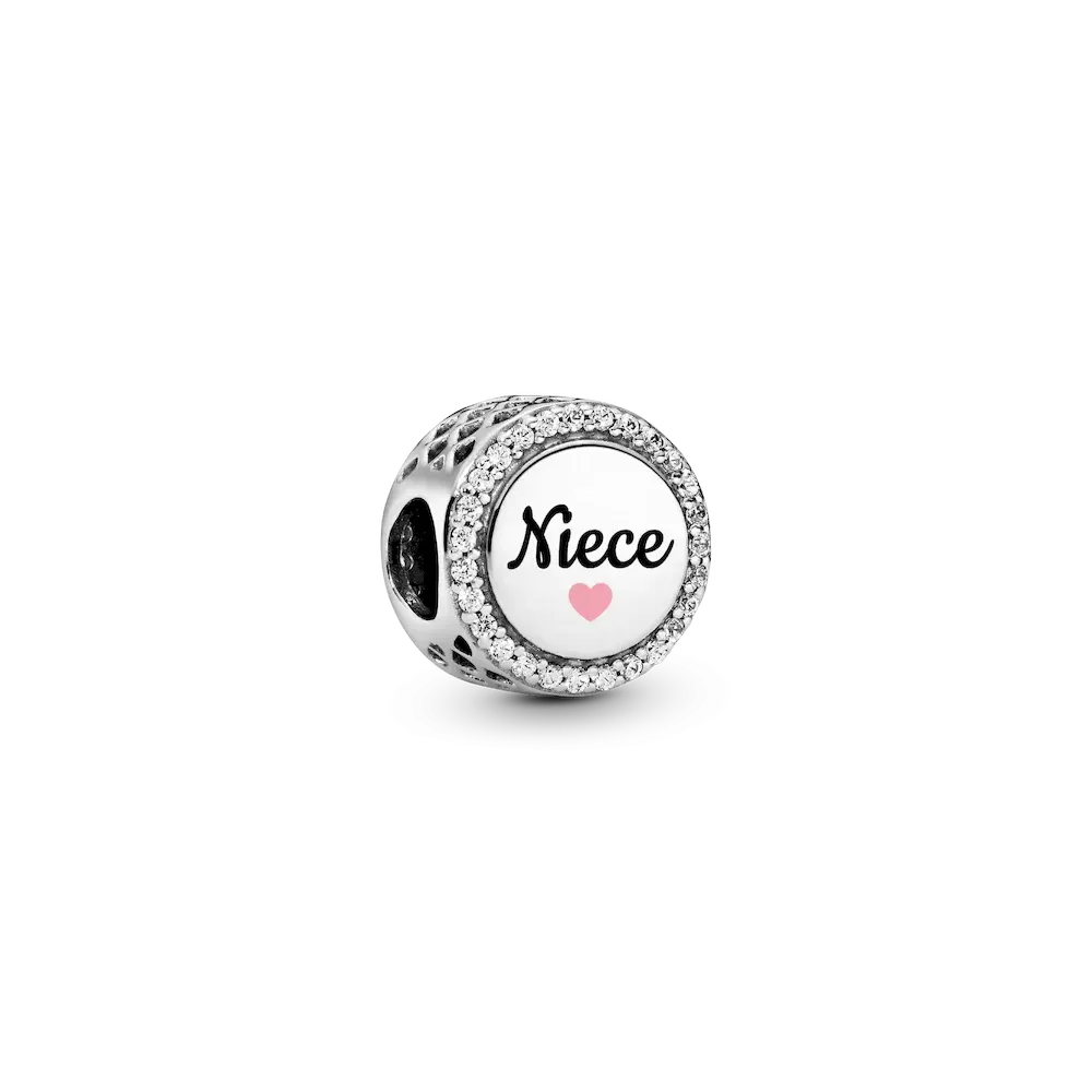 Celebrate your special connection with your niece through this dazzling Engravable Niece Charm. Featuring a sparkling row of pavé cubic zirconia, it’s engraved with