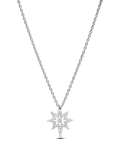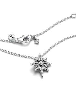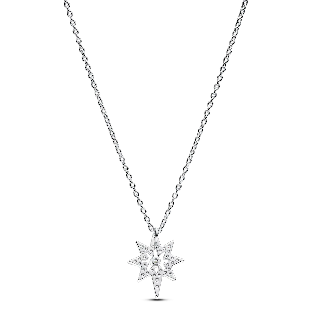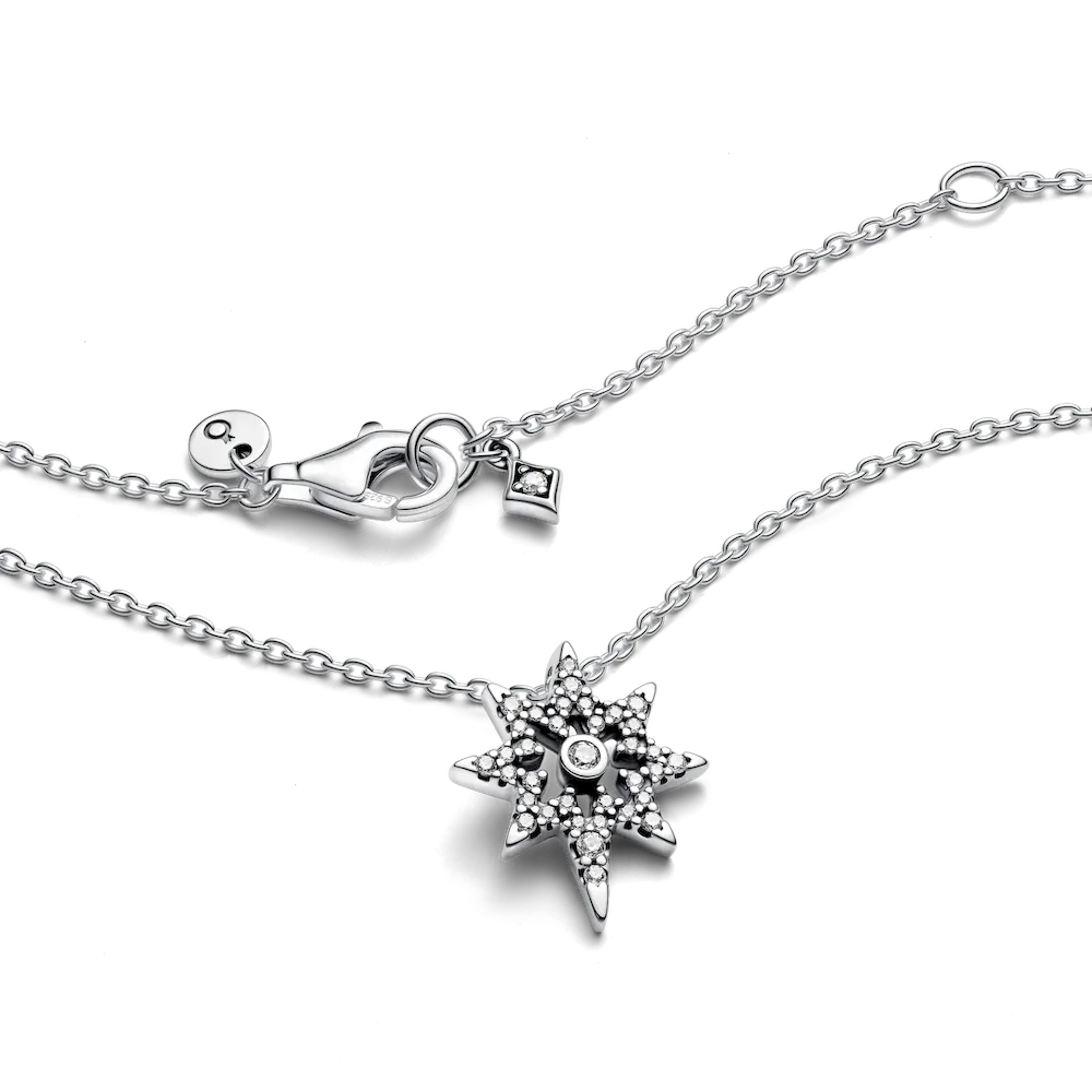 Light up your look with our North Star Pendant Necklace in sterling silver. Featuring the symbolic design of the Polaris shining with clear cubic zirconia from a classic cable chain, this necklace adds a celestial glow to your look with a layer of meaningful symbolism. The chain can be adjusted three different lengths to suit your style. Serving as a compass in uncertain times, the North Star guides us to brighter tomorrows and represents our hopes and dreams. Wear to add sparkle to any festive look or gift it to the shining star of your life.