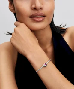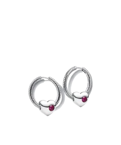This set includes sterling silver hoop earrings featuring our signature snake chain pattern and an engravable heart charm with a flush-set red man-made crystal for October. Add a heartfelt message and make it yours.