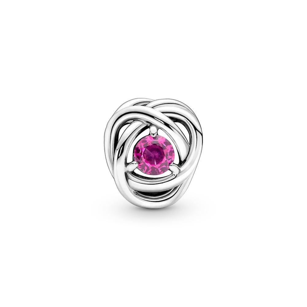 Add a pop of color to your bracelets and pendants with this Pink Eternity Circle Charm. This special piece is made in the shape of an infinity braid and is set with a magenta-colored crystal at its center. Symbolizing eternity, add this sparkling charm to your styling to give your everyday jewelry a bright update.